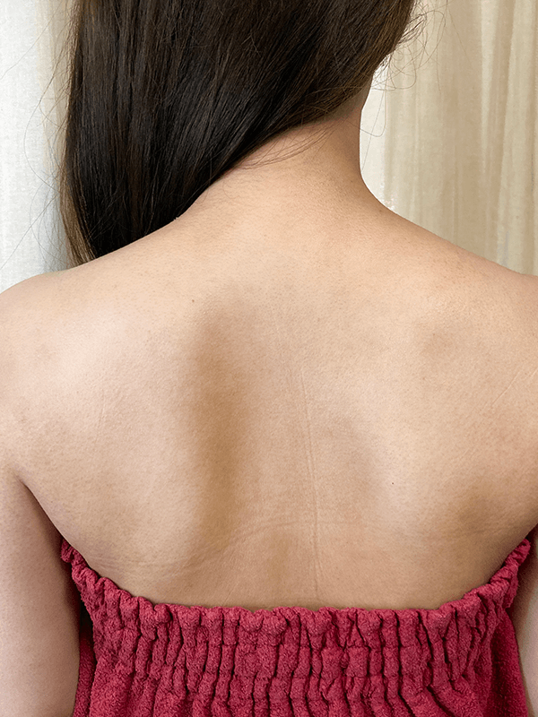 28歳・主婦のゆかさん。幼少期に発症したアトピー性皮膚炎による背中の色素沈着や毛孔性苔癬のトラブルに長い間悩まれていました。挙式に向けて背中をキレイにしたいと施術を受けることにしたそうです。